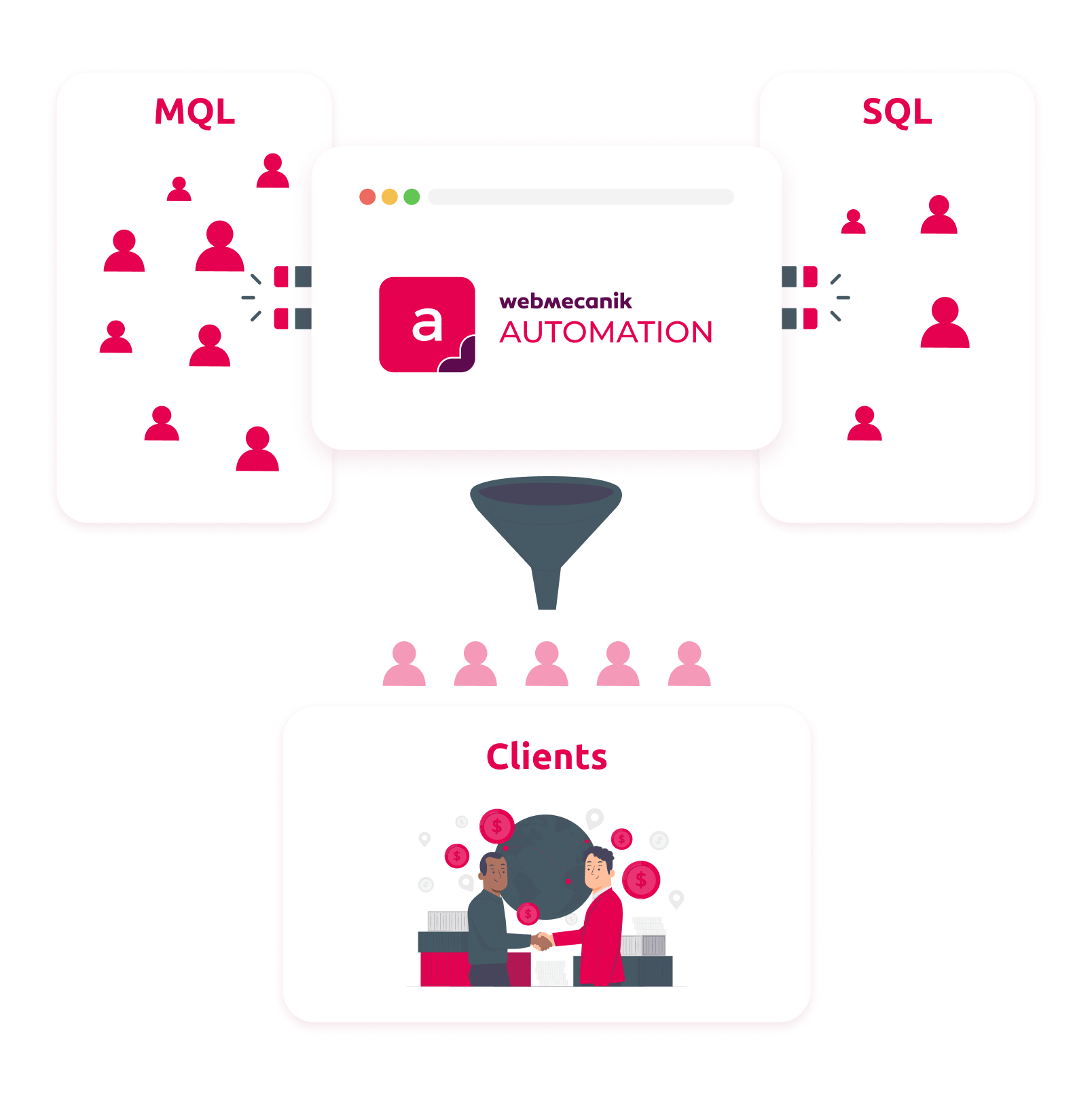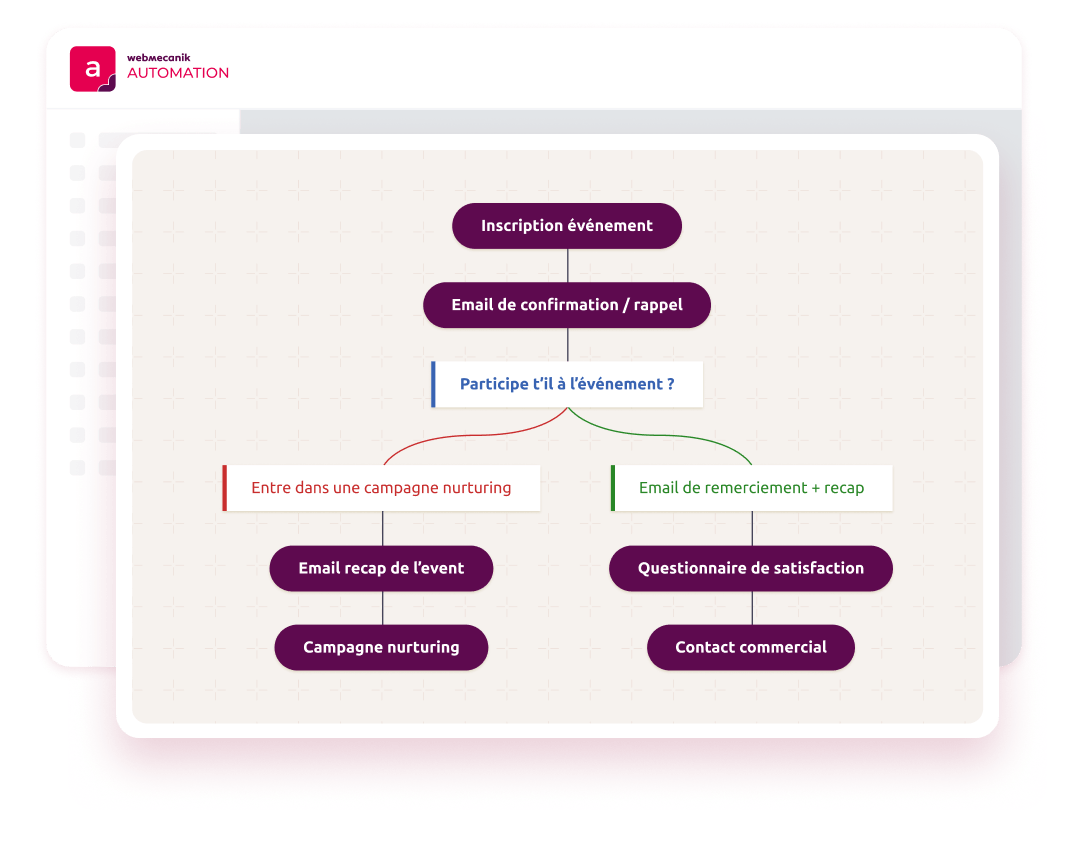 En optant pour Webmecanik Automation, vous générez plus de leads qualifiés, nourrissez vos prospects et augmentez vos conversions, tout en gagnant du temps grâce à des campagnes intelligentes et automatisées.